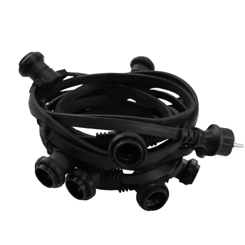 Dette er en gummisnor med 2 fatninger pr. meter. Lyskæden fås i forskellige længder. Denne stærke ledning er velegnet til udendørs og indendørs brug og er ideel som terrassebelysning, stemningsbelysning eller festbelysning.