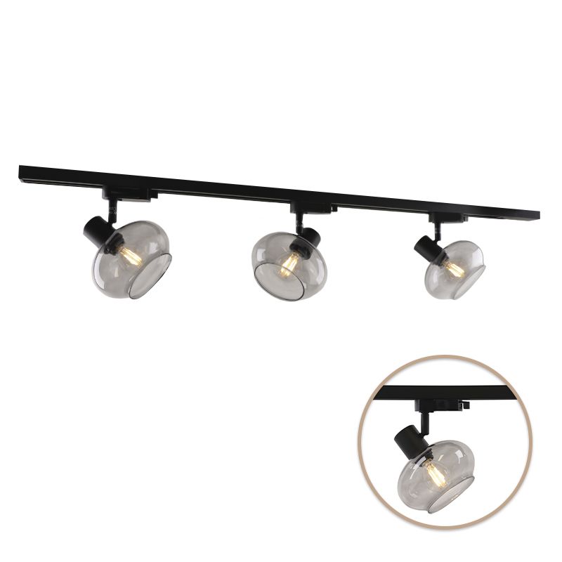 - 1M 1-faset skinnesystem sort + 3 Skip skinnespots