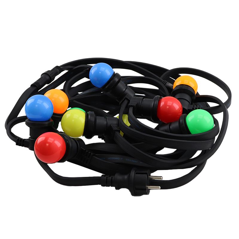 Lyskæde er af professionel kvalitet. Ledningen har et sort kabel i kraftig gummi og har et stik i enden, som kan sættes direkte i stikkontakten. Ledningen indeholder endestykker og tætningsringe pr. stikkontakt; klar til brug!