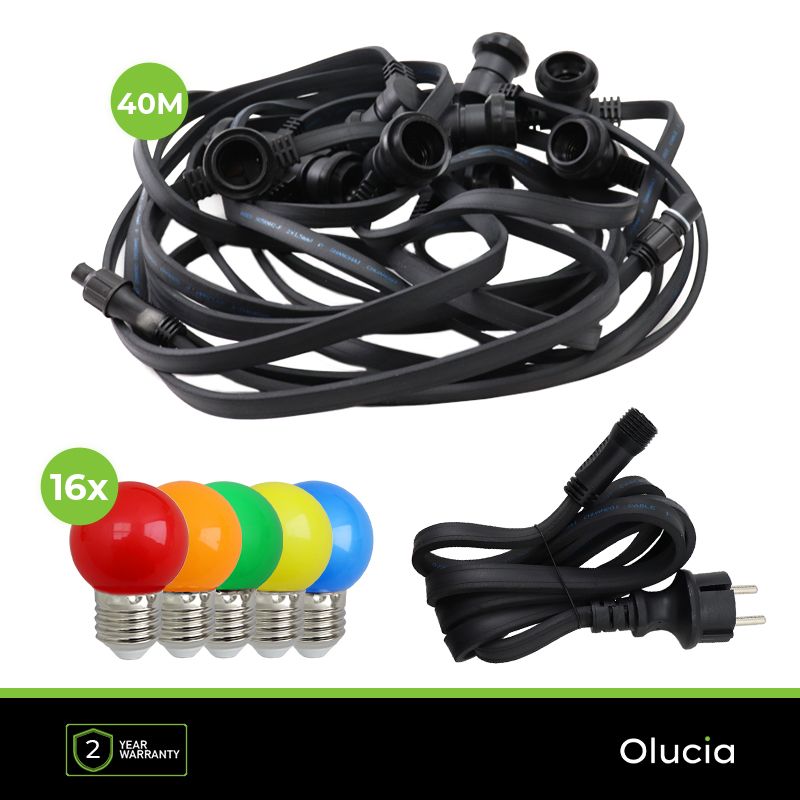 - 40m lyskæde med 80 farvede pærer