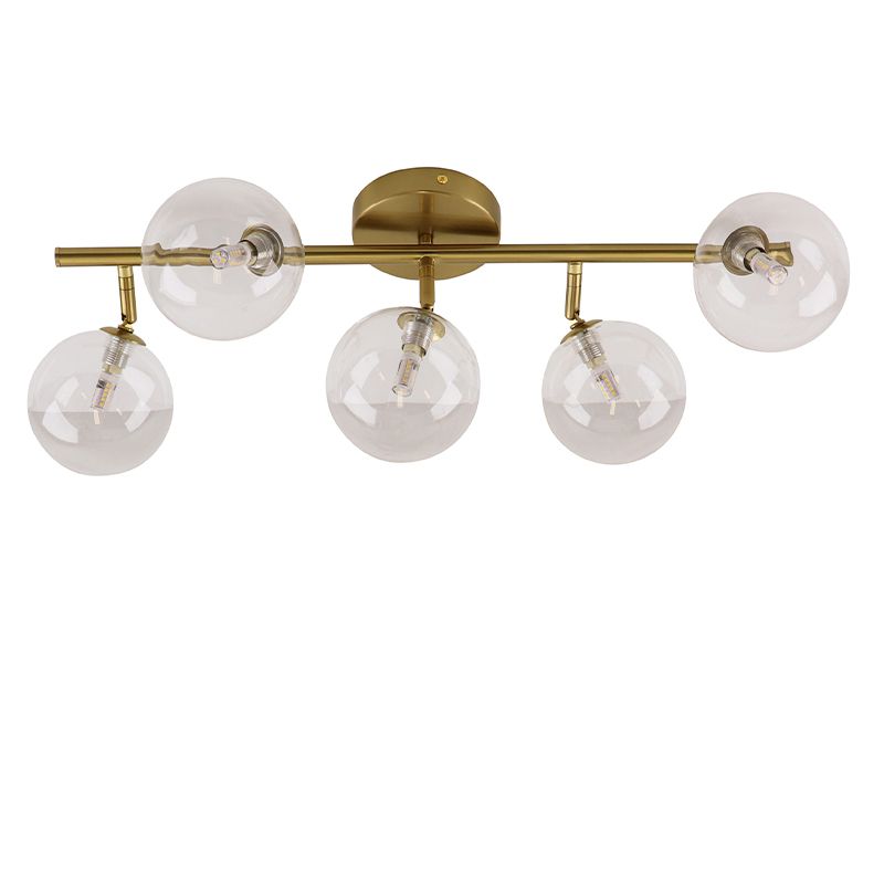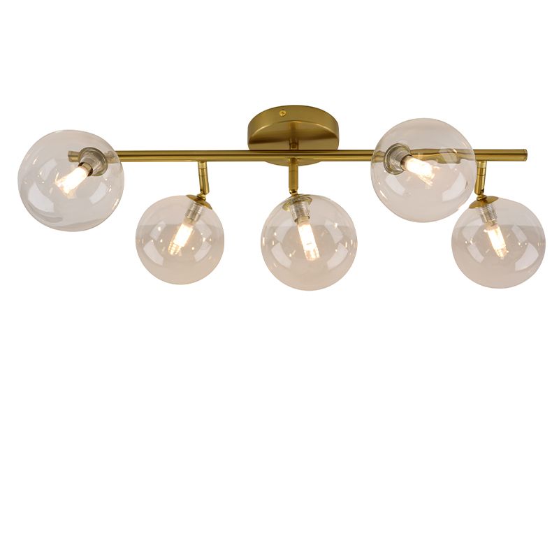 Produkt information Maksimal Watt 5 Forsyningsspænding 220-240V Antal lys 5 Sokkel G9 Produkt information Lys inkluderet Nej Bredde i cm 36 Bredde bund/monteringsplade 12 Højde i cm 22.5 Højde bund/monteringsplade 2.5 Længde i cm 60 Længde bund/monteringsplade 12 Dæmpbar Ja (ikke inkluderet) Garanti 2 år IP klassificering IP20 (støvtæt) Farve Messing, Gennemsigtig Materiale Metal, Glas Stil Design Artikel nummer Q18625 - Forsiden