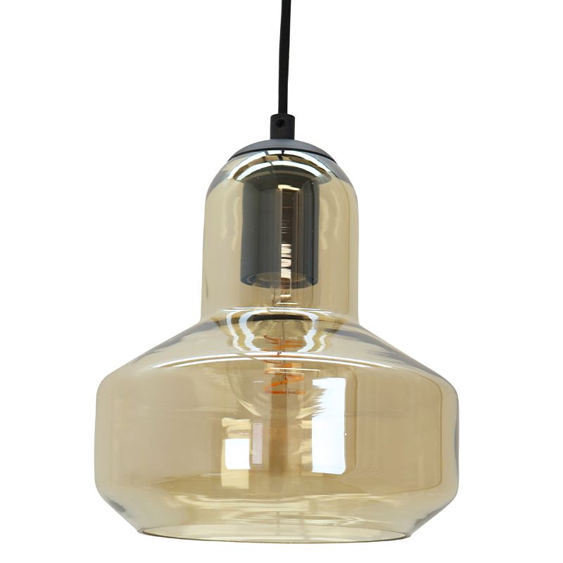 Den design pendler lampe Sabina er rav i farven og lavet af glas. Denne ravfarvede pendler lampe leveres uden matchende lyskilde. I denne lampe er en lyskilde med E27 armatur og lyskildens maksimale watt må ikke overstige 40 watt.