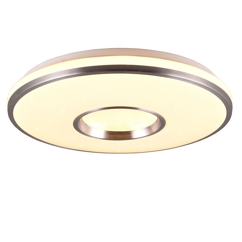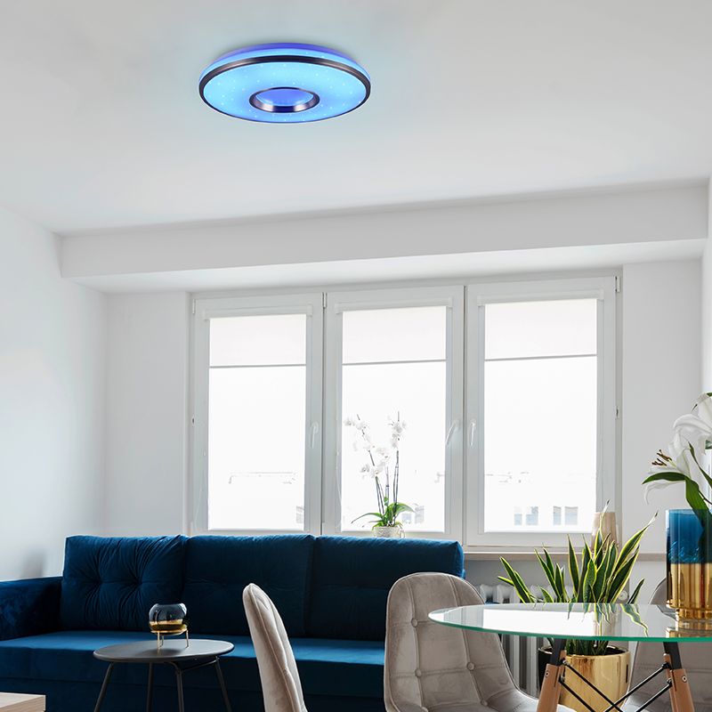 Produkt information Maksimal Watt 21 Forsyningsspænding 220-240V Antal lys 1 Antal lumen 2200 Produkt information Lys farve RGBW (alle farver + hvid) Sokkel LED integreret Lyskildetype inkluderet Integreret LED Forventede brændetimer 15000 Lys inkluderet Ja, integreret Bredde i cm 39 Diameter i cm 39 Højde i cm 7 Dæmpbar Ja (inkluderet) Garanti 2 år IP klassificering IP20 (støvtæt) Farve Hvid Materiale Plast Med afbryder Ja Stil Basis Type afbryder Fjernbetjening Artikel nummer Q51376 - Forsiden