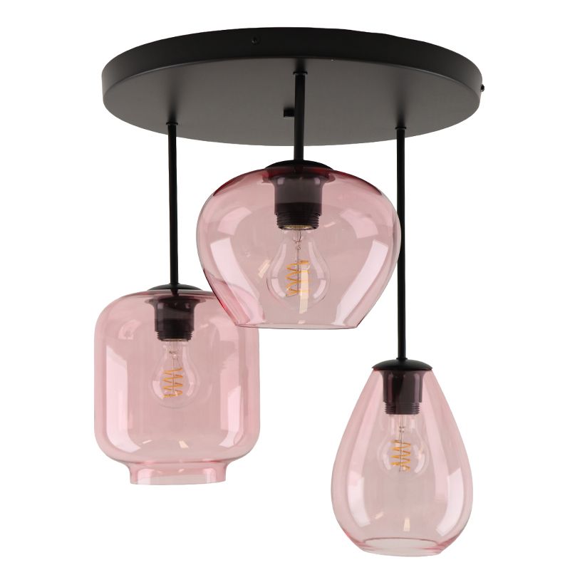 Den moderne loftlampe Caia er lyserød i farven og lavet af glas. Denne lyserøde loftlampe leveres uden lyskilder. Denne lampe har brug for 3 lyskilder med E27 armaturer. Den maksimale watt på lyskilderne bør ikke overstige 7 watt per lampe.