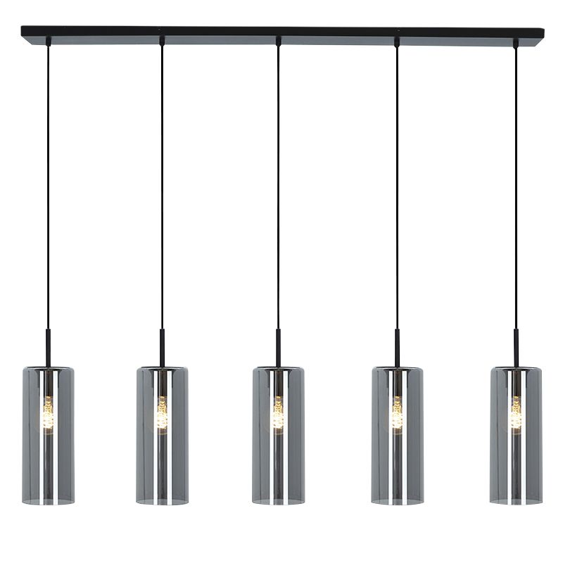 Produkt information Maksimal Watt 60 Forsyningsspænding 220-240V Antal lys 5 Sokkel E27 Produkt information Lys inkluderet Nej Bredde i cm 110 Bredde bund/monteringsplade 8 Højde i cm 120 Højde bund/monteringsplade 2.5 Længde i cm 11 Længde bund/monteringsplade 110 Dæmpbar Ja (ikke inkluderet) Garanti 2 år IP klassificering IP20 (støvtæt) Farve Grå, Sort Materiale Metal, Glas Stil Modern Artikel nummer Q79867 - Forsiden