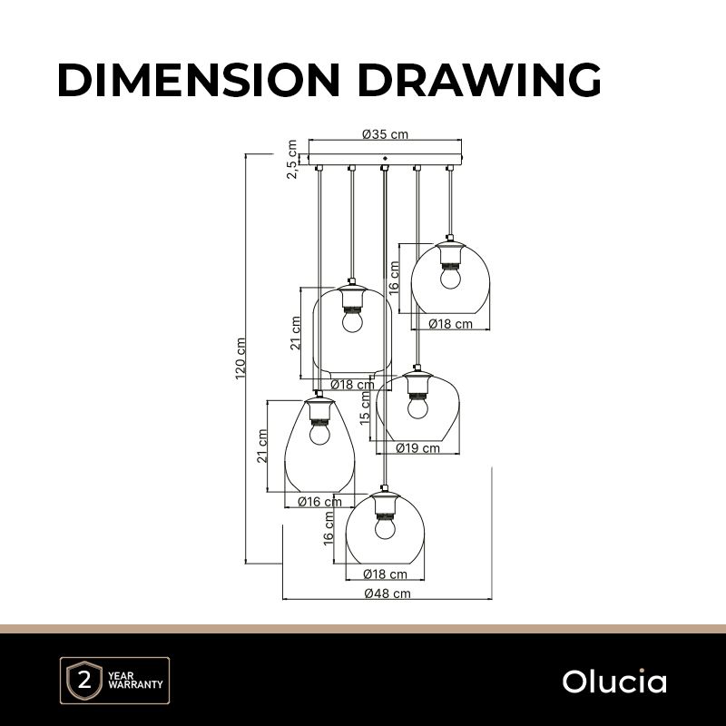 Produkt information Maksimal Watt 7 Forsyningsspænding 220-240V Antal lys 5 Sokkel E27 Produkt information Lys inkluderet Nej Bredde i cm 48 Bredde bund/monteringsplade 35 Diameter i cm 48 Højde i cm 120 Højde bund/monteringsplade 2.5 Længde i cm 48 Længde bund/monteringsplade 35 Dæmpbar Ja (ikke inkluderet) Garanti 2 år IP klassificering IP20 (støvtæt) Farve Grøn, Sort Materiale Metal, Glas Stil Modern Artikel nummer Q11945 - Forsiden