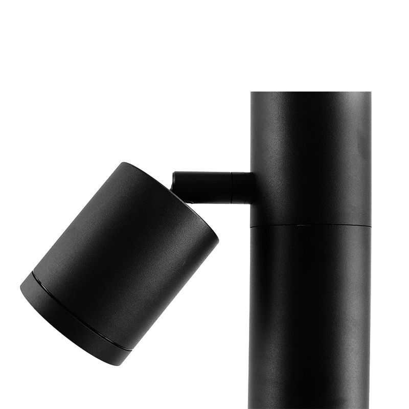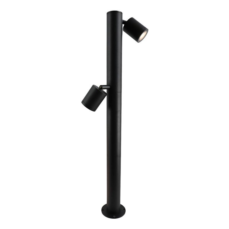 Produkt information Maksimal Watt 25 Forsyningsspænding 220-240V Antal lys 2 Sokkel GU10 Produkt information Lys inkluderet Nej Bredde i cm 6.6 Vægt i KG 2 Højde i cm 95 Dæmpbar Ja (ikke inkluderet) Garanti 2 år IP klassificering IP44 (vandtæt) Farve Sort Materiale Aluminium Med afbryder Nej Med ledning og stik Nej Stil Modern Artikel nummer Q34252 - Forsiden