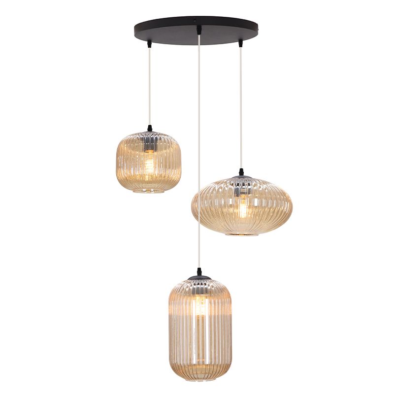 Den retro pendler lampe Charlois er rav i farven og lavet af glas. Denne ravfarvede pendler lampe leveres uden lyskilder. Denne lampe har brug for 3 lyskilder med E27 armaturer. Den maksimale watt på lyskilderne bør ikke overstige 40 watt per lampe.