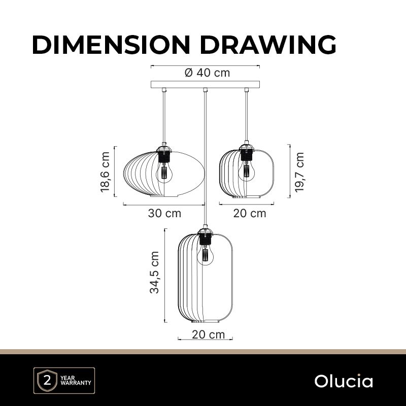 Design pendler lampe rav, Lazaro- D: 30 cm, H: 130 cm
