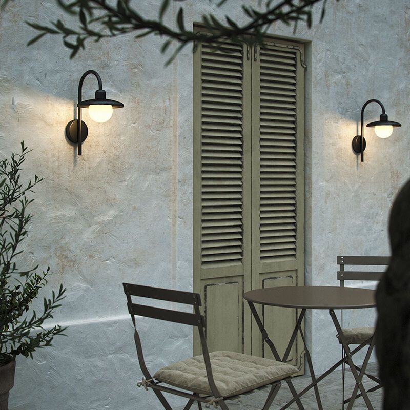 Tilbudspris 888,56kr. Veijl. pris: Normalpris 963,23kr.På lager Sort udendørslampe modern, Aleria, IP44- B: 11,5 cm, H: 10,7 cm